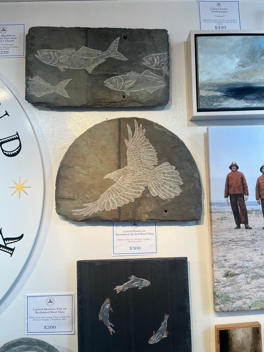 Carved Raven on Reclaimed Slate | Arched | Updike