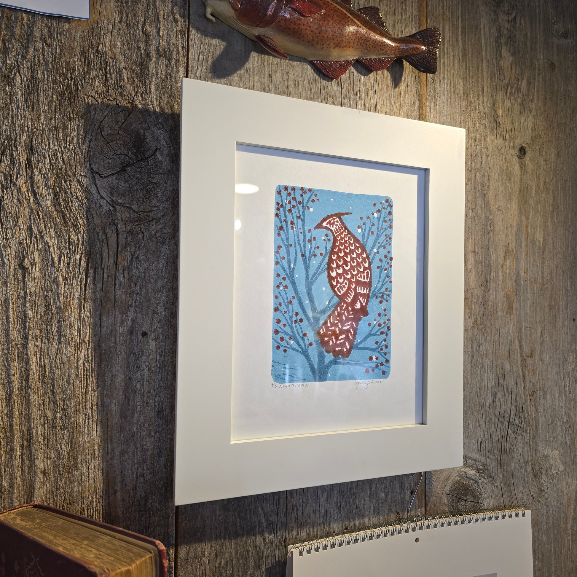 Andrea Maginnis | "Winter Bird" | Linocut Print Framed