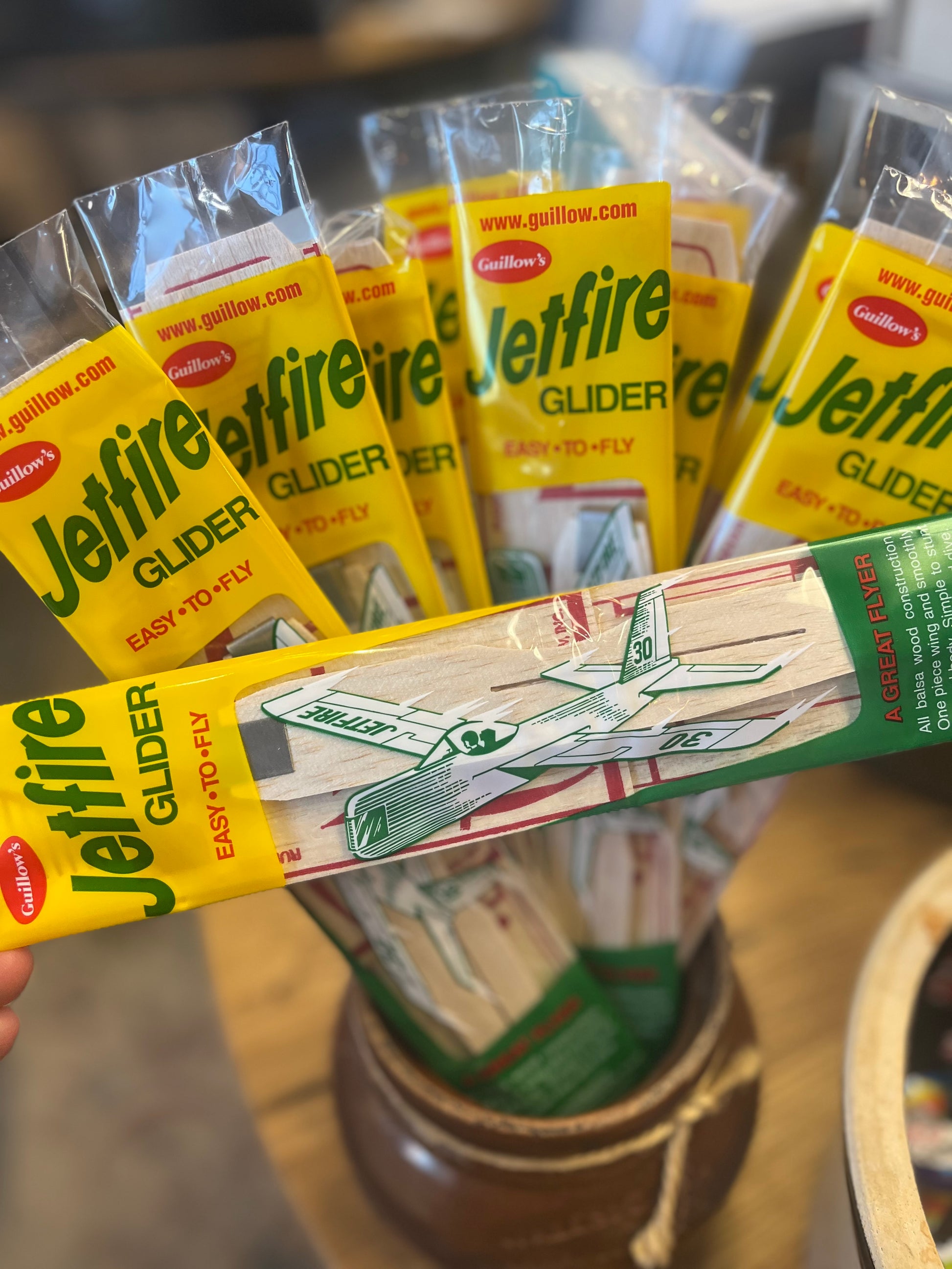 A high performance flyer with the style of a jet fighter. Large 12" wing span with a built in dihedral. Colorful style prints on the wing, tail surfaces and canopy.