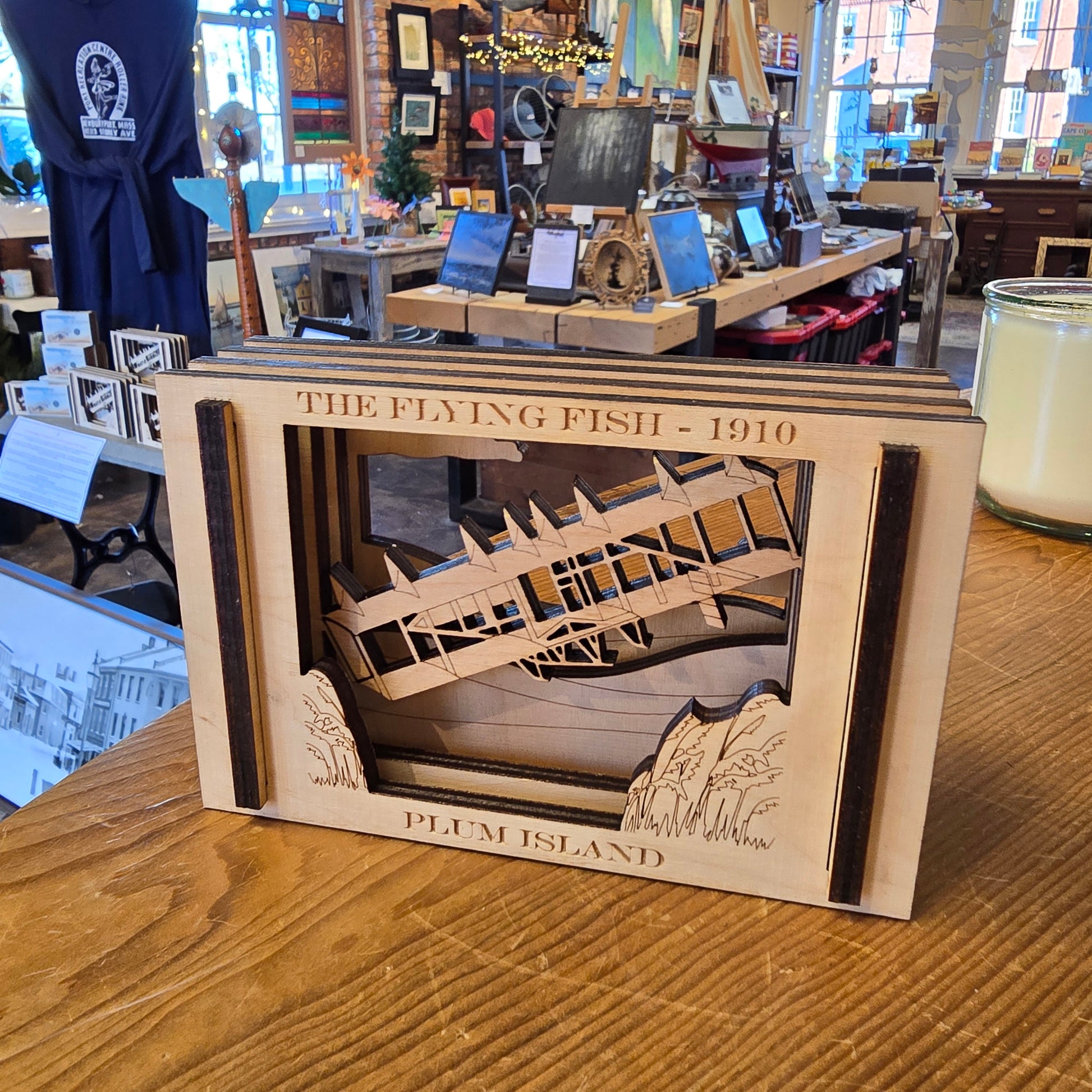 We were very eager to tell the story of early aviation on our beloved Plum Island - so set to creating a 3-dimensional piece that illustrate the pioneering work of Marblehead's W. Starling Burgess.