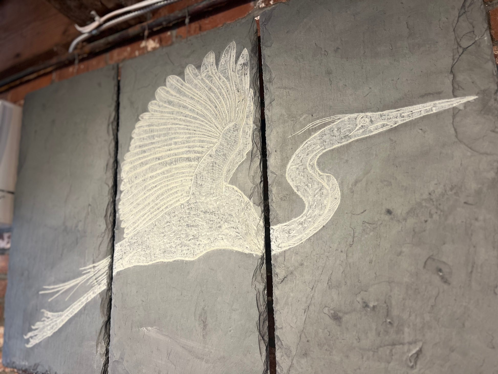 Carved Slate Triptych | Heron in Flight | Updike