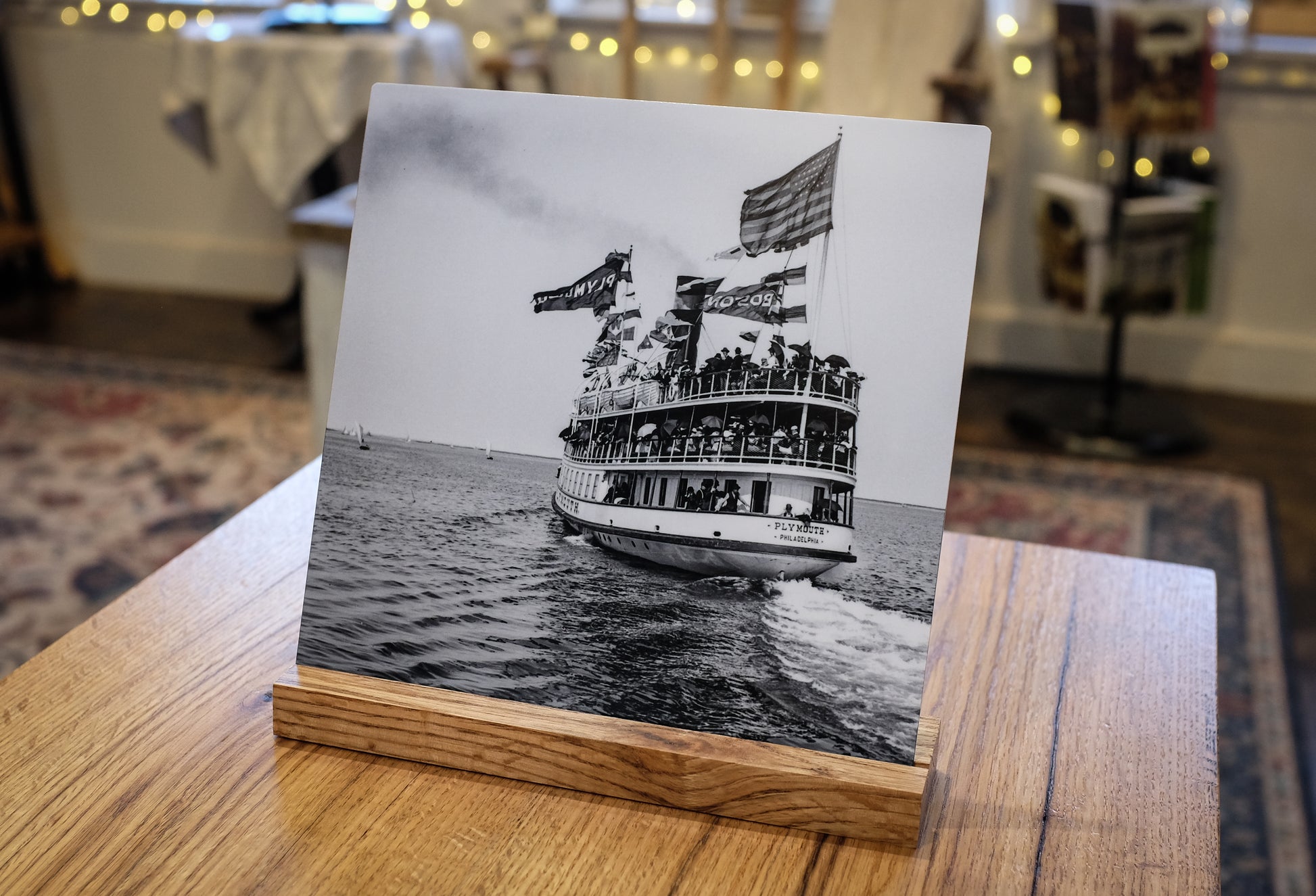 Each year we will create a series of beautiful items based on a select set of negatives from NESB's archive. We titled this image "Steamer Plymouth" (certainly explanatory) and appears to have been taken from vessel to vessel - likely in the late 1880s. The passengers, smoke, wake and winds really bring some wonderful movement and reflect a time when these steamships were piloted up and down the NE coast as well as inland lakes.