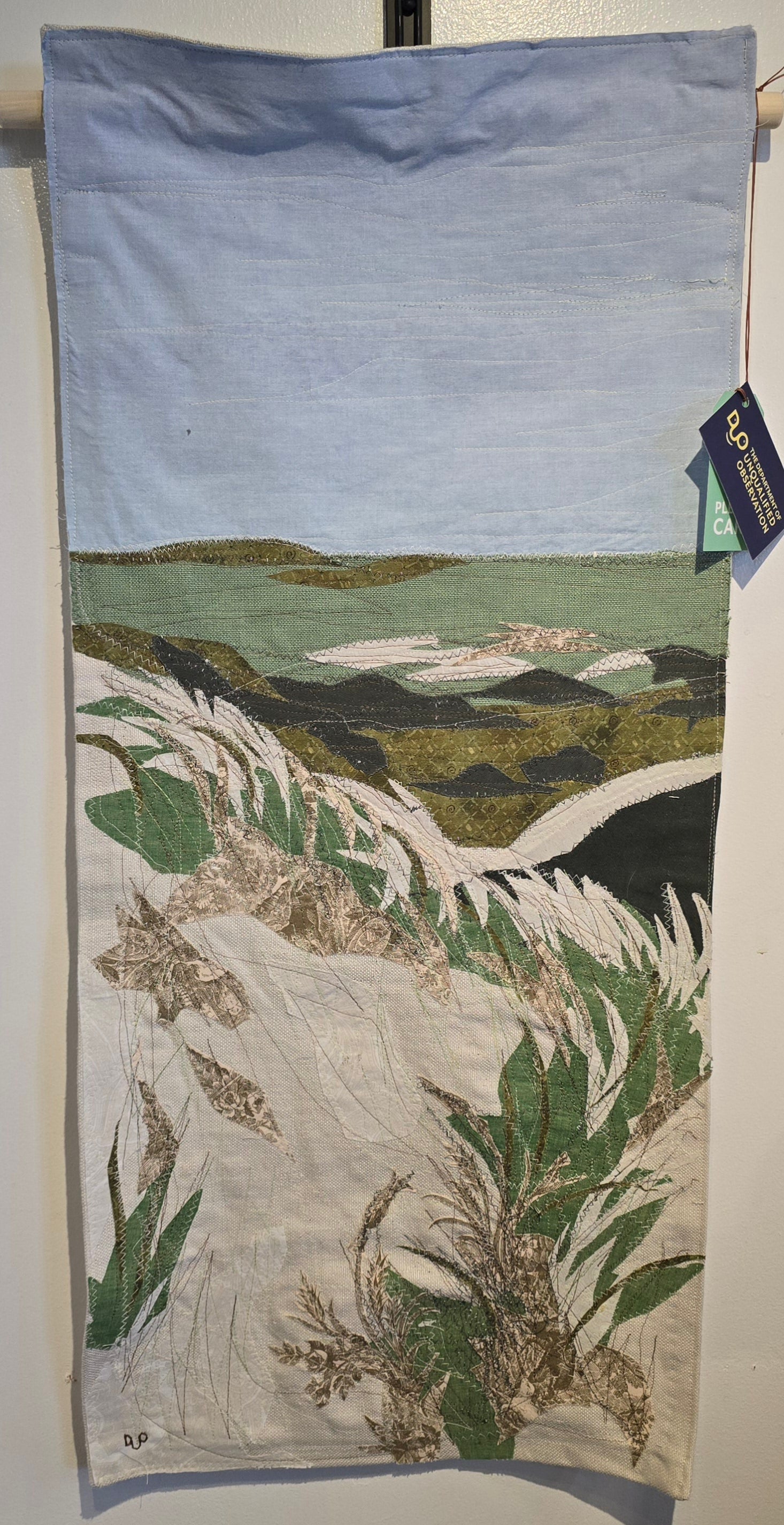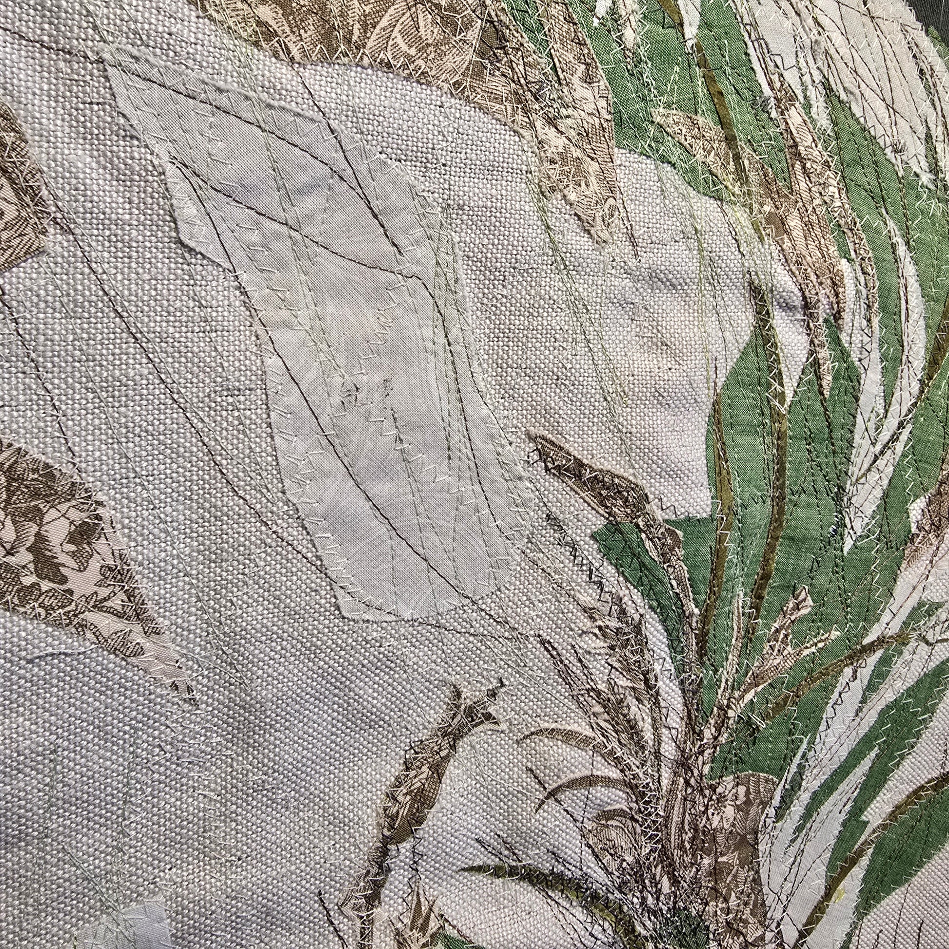 Striking composition of the North Shore's spectacular Great Marsh. This piece showcases Megan's incredible stitching illustration technique - so I added a few detailed snapshots below.