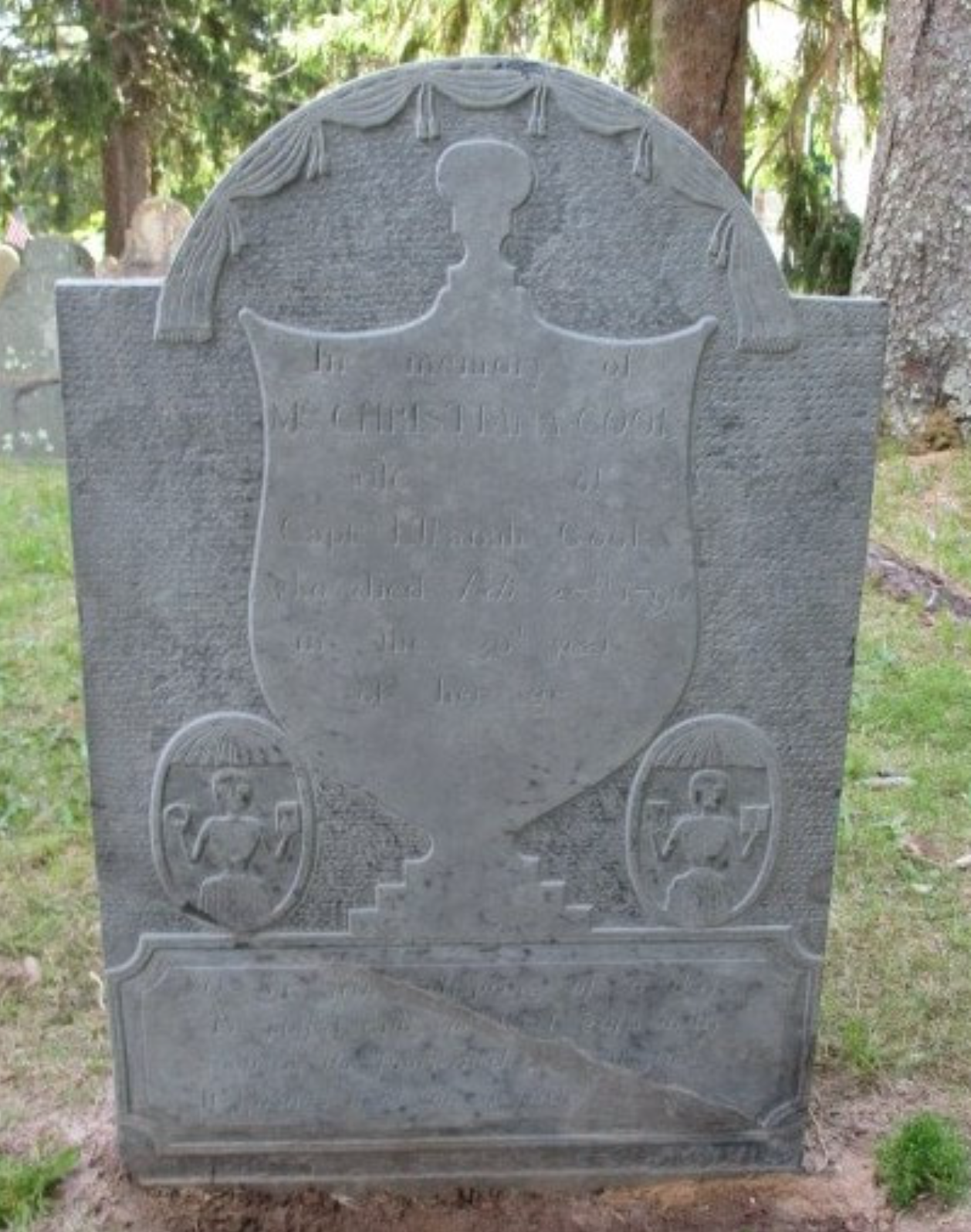 Mrs. Christiana Cook wasn’t a librarian, but this image from her gravestone of the Book of Life (or Bible) & a hourglass warn the living Death is imminent, so behave & prepare! She died February 27, 1796 & rests eternally in the Old Burial Ground in Kingston, Massachusetts. Carver: Bartlett Adams